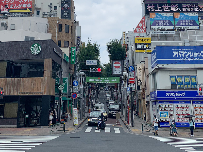 神楽坂のメイン通りである神楽坂通りが目の前に見えていますね。