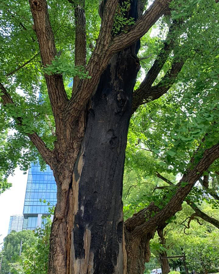 港区の戦災の様子は、芝公園にある戦災イチョウとスダジイの木からも見ることができる。
