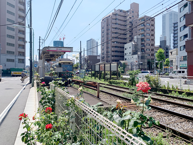 バラロードとついていなくても、都電荒川線の沿線にはバラが咲き歩き人の心を和ませてくれる風景がある。のんびりゆったり心を歩っとさせてくれる道がある。