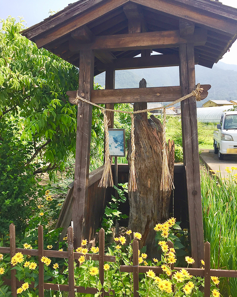 小さな立て看板の文字がにじんで、よく見えなかったけれど、1816年に杉の大木が倒れたのを、それ以来、里の人が祀っているようだ。