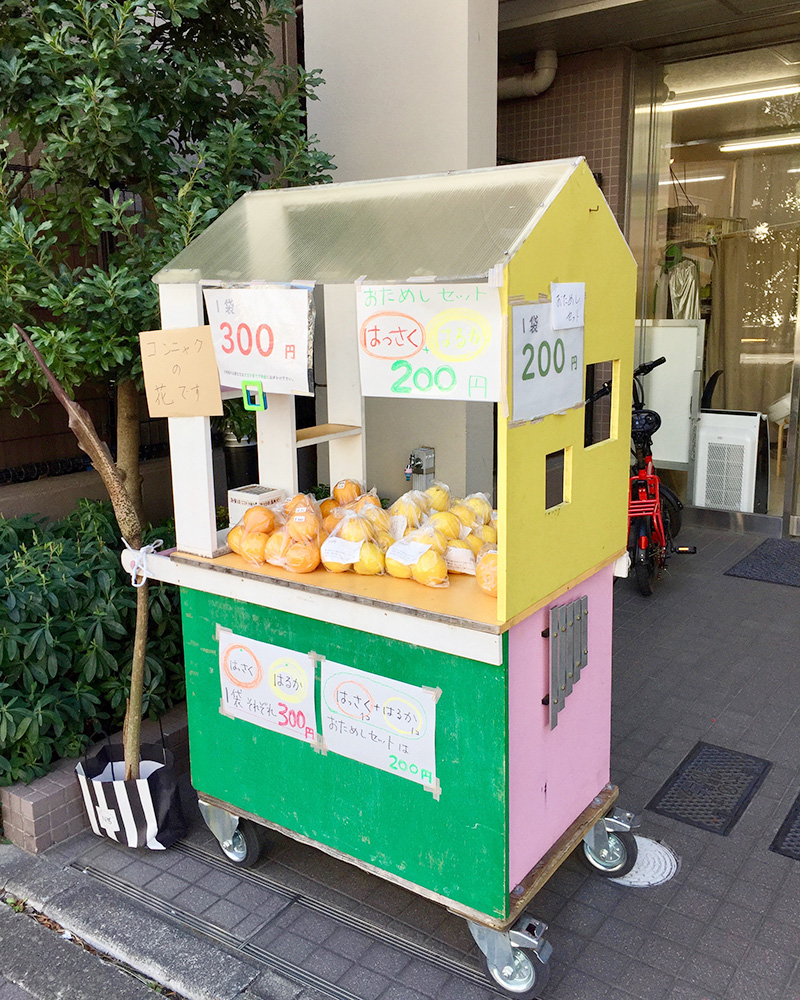 ちょこっと脇を見ると、はっさくが無人販売で売られていた。