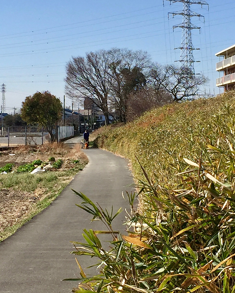 荒川土手の上を行くそこからほどなく、中山道は、荒川土手の上を進んでいく。