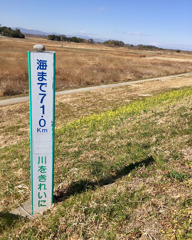 向こう岸が見えない「海まで71.0km」と書かれた標識を通り過ぎると、「カスリーン台風の碑」があった。