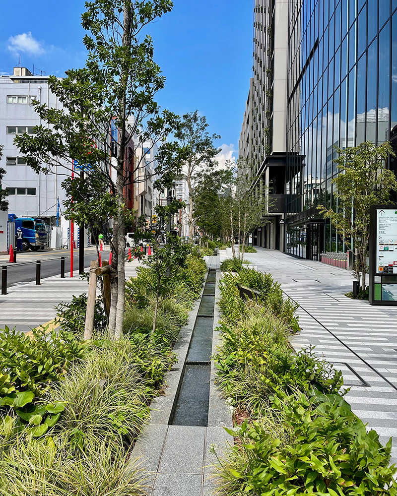 ビルのわきには、玉川上水の跡がきちんと再現されていて、モダンなビルなのに、その土地の記憶を消し去ることなく、歴史の厚みをしっかりと今に伝えようとしている。