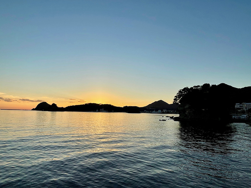 暮れなずむ下田湾に浮かぶ柿崎弁天島