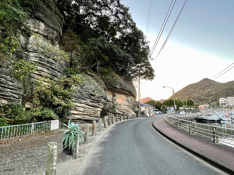 島の入り口には、数百万年前にできた立派なミルフィーユ状の地層がある。