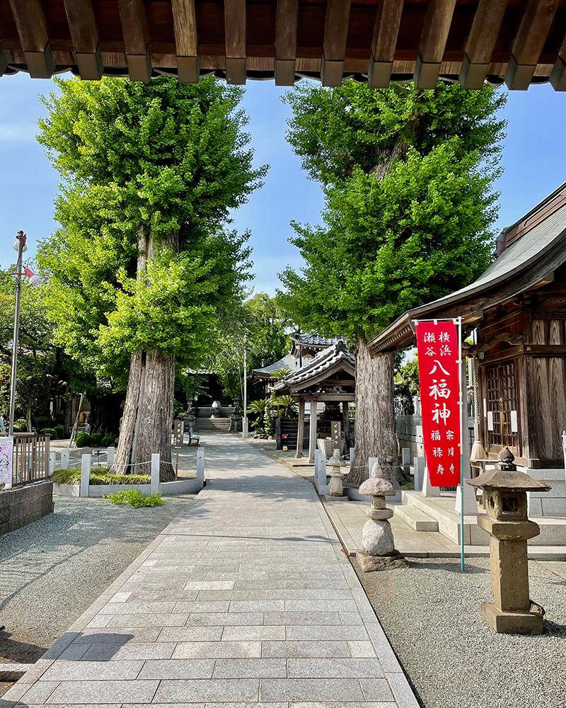 中原往還の瀬谷問屋場跡にある宗川寺の夫婦銀杏「宗川寺(そうせんじ)」で中原街道と交差した。