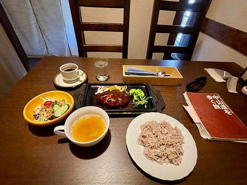 肉汁のしたたる手ごねハンバーグを味わい、この先のルートの作戦を考えた。
