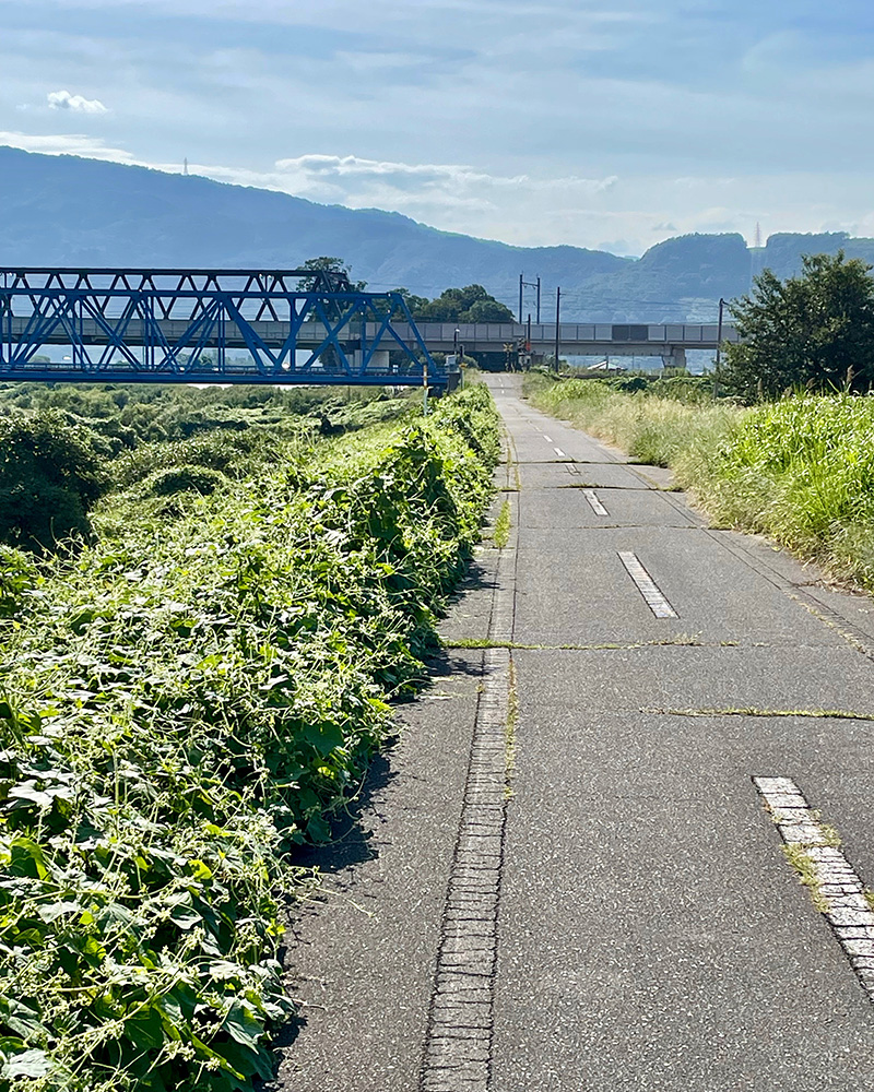 橋を渡りきり、土手道を渡河地点まで歩いていく。